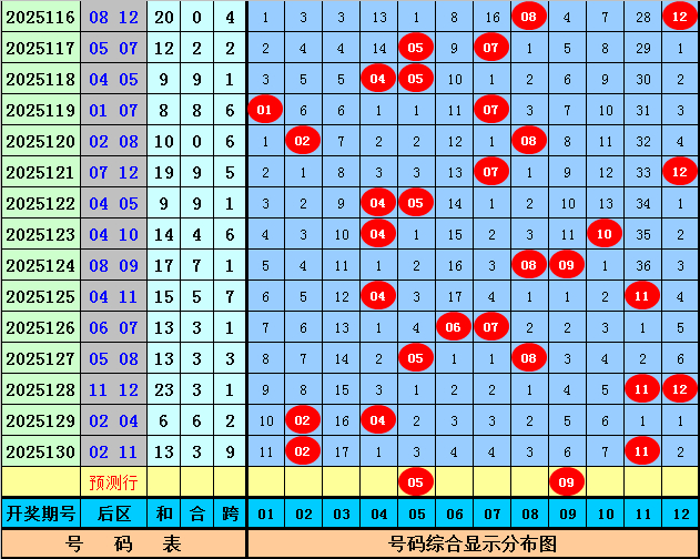 后诀别析:上期后区为一奇一偶号码02+11,最近10期后区号码奇偶比为8:12,最近50期后区奇偶比为46:54,本期后区看好全奇组合,参考号码05、09。