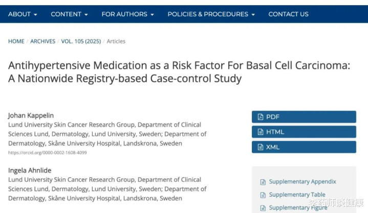 Johan Kappelin et al, Antihypertensive Medication as a Risk Factor For Basal Cell Carcinoma: A Nationwide Registry-based Case-control Study, Acta Dermato-Venereologica (2025).