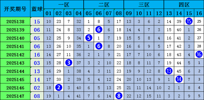 红一区(01-11):上期该区开出4个01、03、05、08,前十期号码01出现3次,号码03出现2次,号码05出现4次,号码08出现2次。前十期该区断区0次,出现22个号码。本期瞻望该区落号,消除断区状况,本期红一区号码重心暖和02、10。